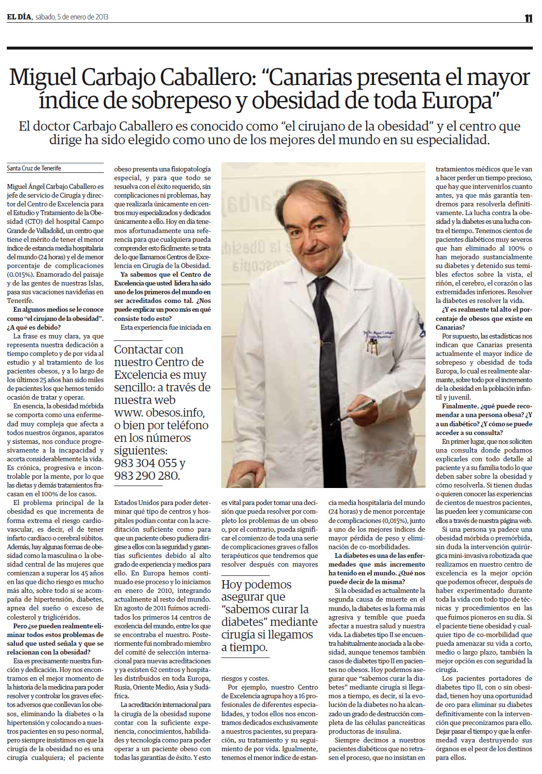 Guía Sanitaria de Valladolid: Centro de Excelencia para el estudio y Tratamiento de la Obesidad. Obesidad y Diabetes: doble epidemia.